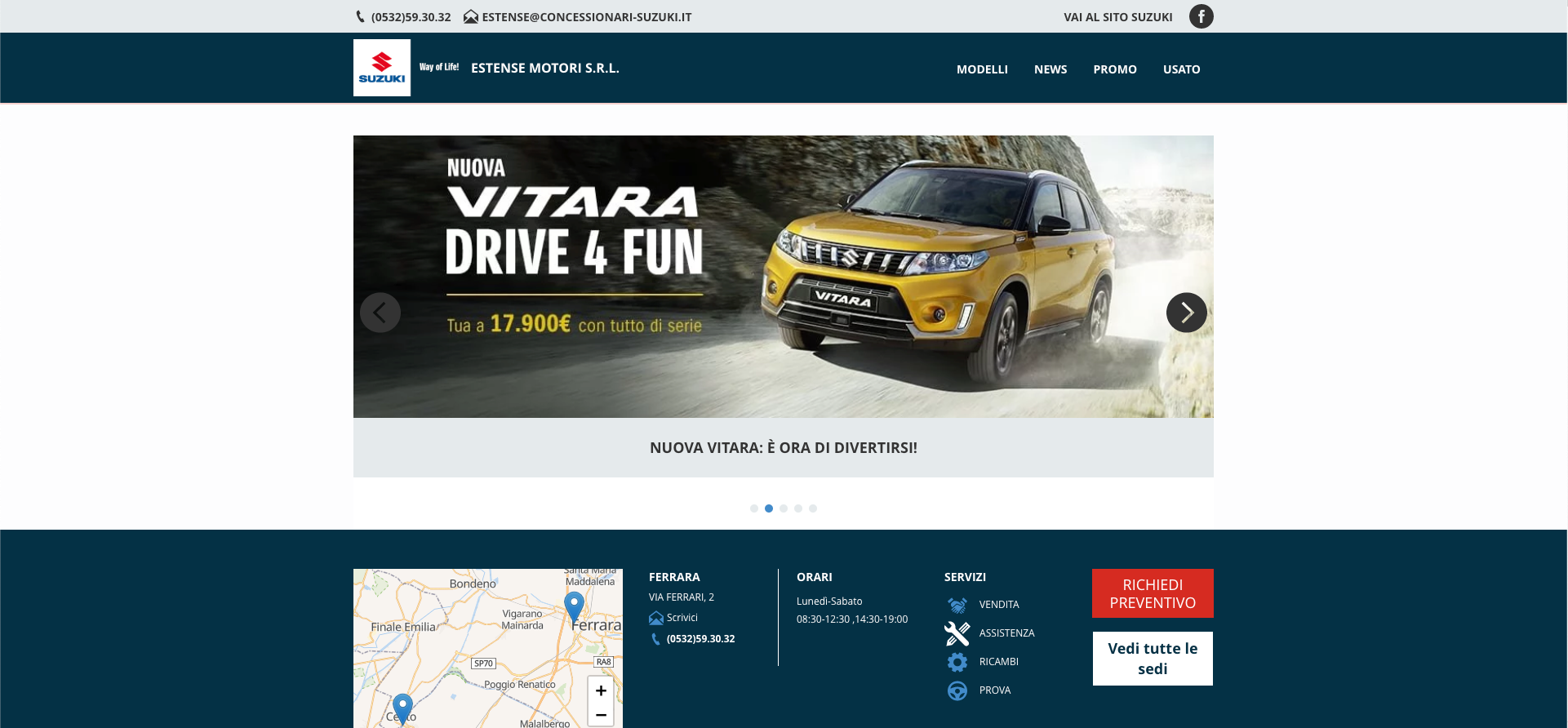 Vai al sito dedicatoRichiedi preventivoPrenota tagliandoPrenota test drive Auto Usate -59% Quick view Add to compare Salva Auto SUZUKI SWACE TOP USATO GARANTITO Suzuki 32.000,00€ Il prezzo originale era: 32.000,00€.13.000,00€Il prezzo attuale è: 13.000,00€.
